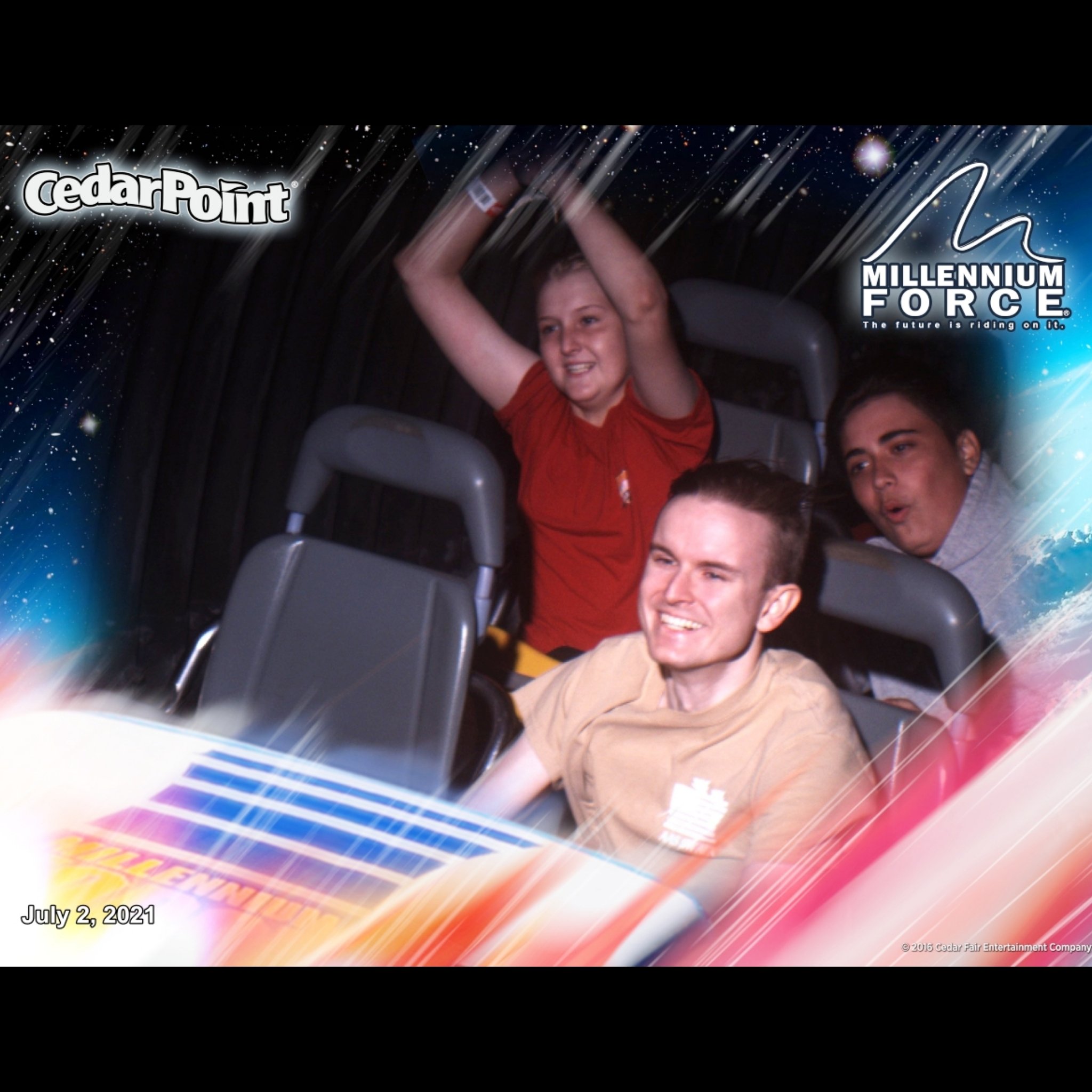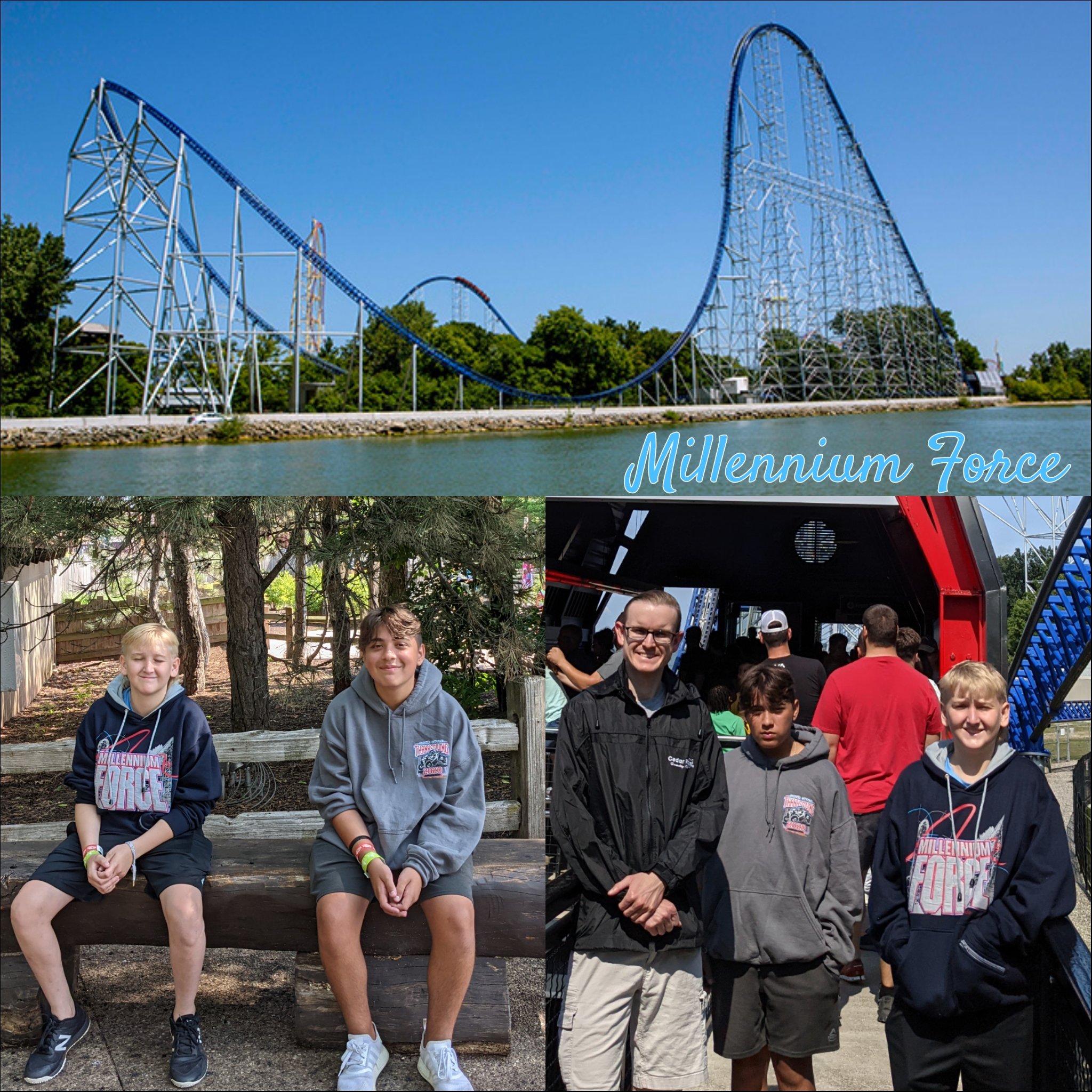 When I can hold my companions off no longer, I join them on the Millennium Force. “Just hold your head up and it won’t bother your neck” one thoughtful son tells me. As I slam my eyes shut, I brace myself with both feet and hands. Tightly grasping the yellow bar in front of me, the ride begins. Upward we soar 310 FT. in the air before we plummet @93mph. I think of Philip speed skiing at the 1992 Olympic trials at the same or faster speed. The thought helps me negotiate the somersaults my stomach is taking though I am surprised I am not as intolerant of them as I anticipated I would be. All in all I am pleased with the state of my being as we de-coaster. I could do that again, I think…but there is no longer anything to say I should.