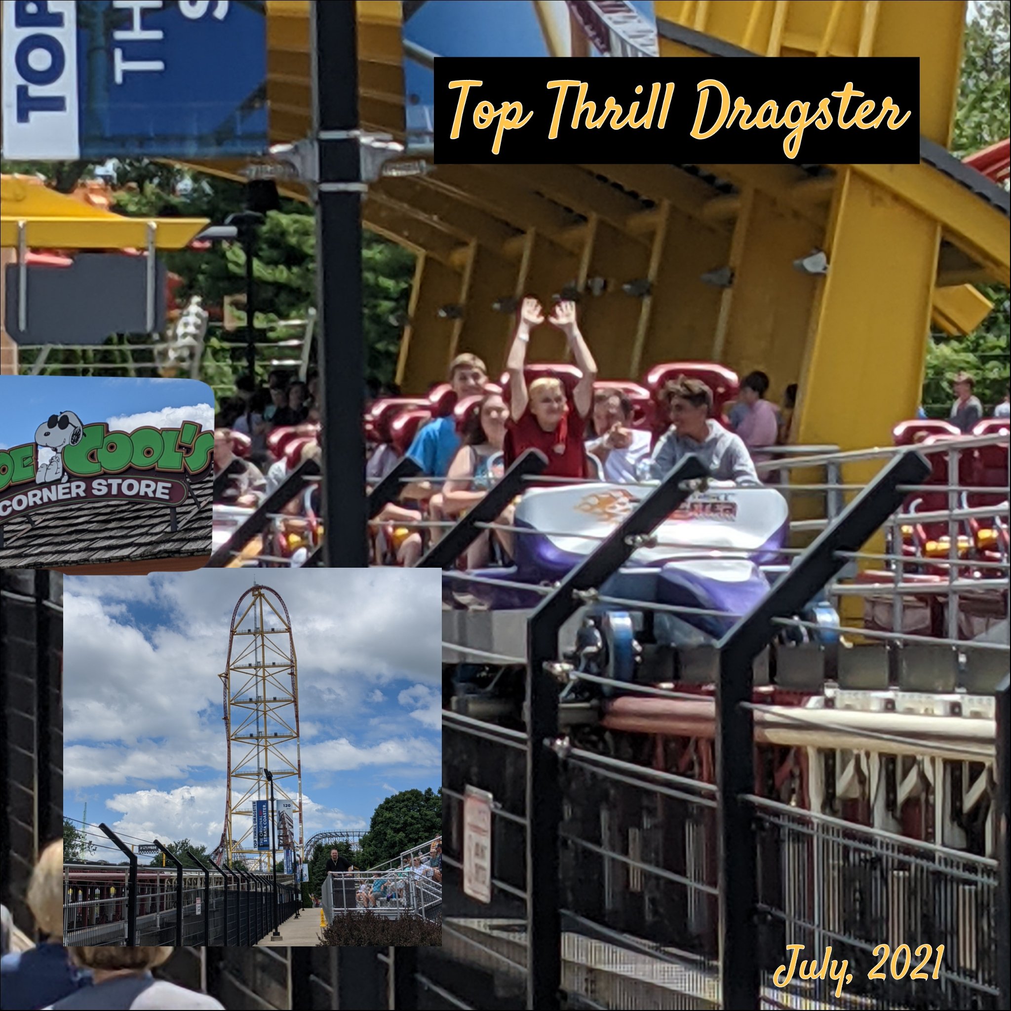 As the sons fast pass their ways to shorter lines and fierce dedication to extreme fun, I stroll among the park gardens. The colorful smiles of the not so overwhelming numbers of passersby buoy my spirit infusing it with the kind of joy that comes from sharing the beauty of fun…The Valravn, The Millennium and Magnum Force, Steel Vengeance, the Rougarou, the Dragster and my beloved Corkscrew and Blue Streak of yesteryear. In the heat of the day, I share a frozen vodka lemonade with my son in the shade of the saloon while we wait for the stories from our own epic thrill seekers.